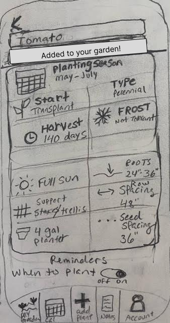 We developed a user flow for how a user might search for and add a plant to their virtual garden in the app.